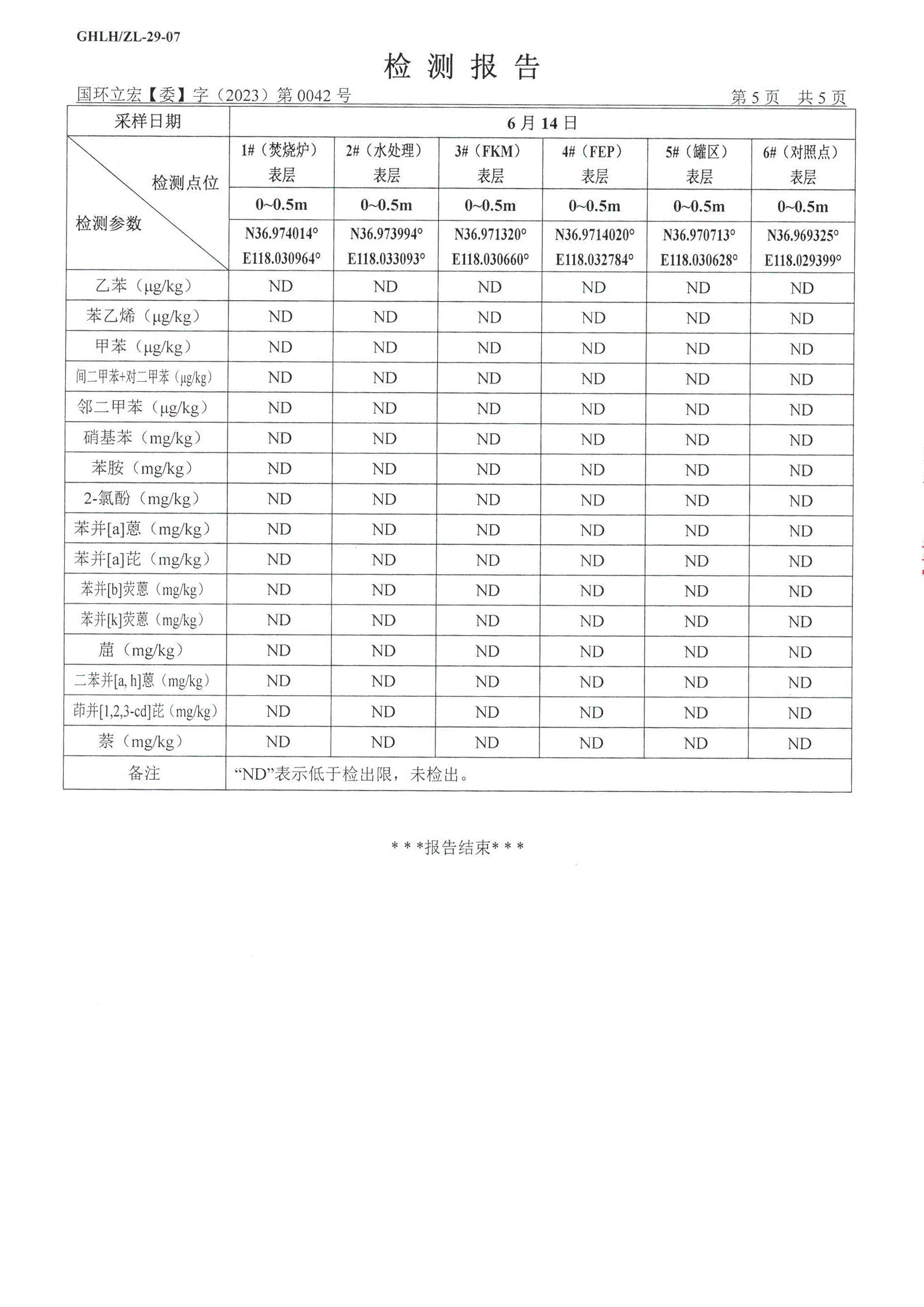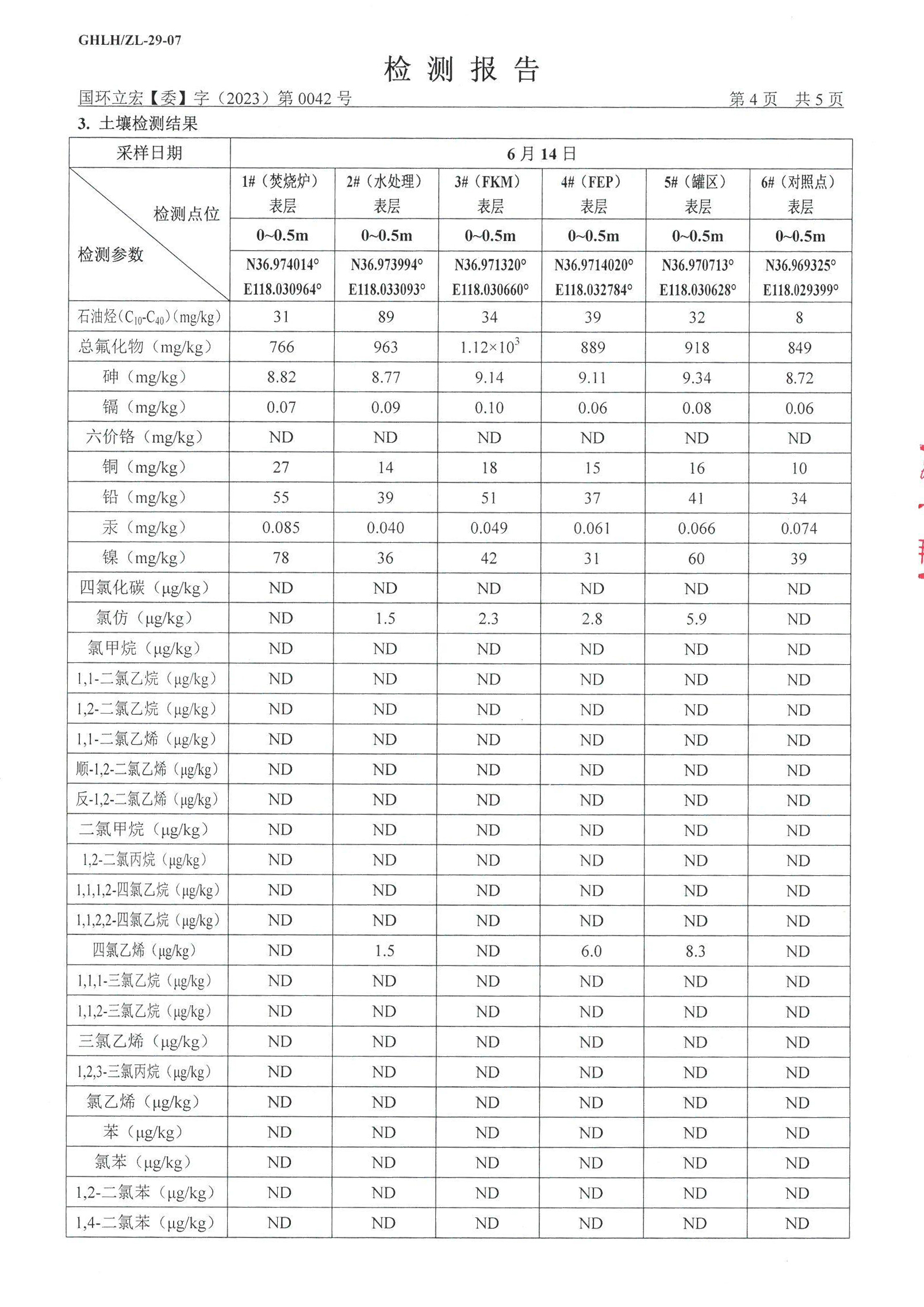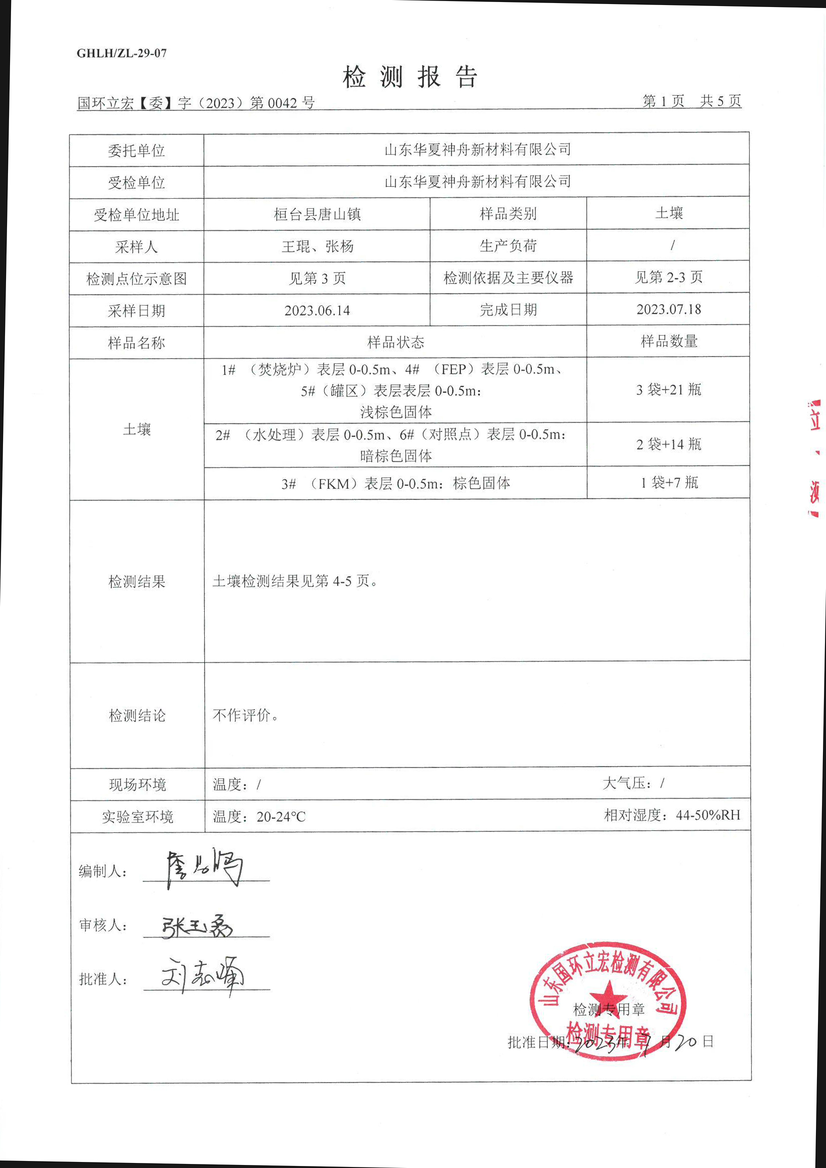山东华夏神舟新材料有限公司2023年土壤检测报告