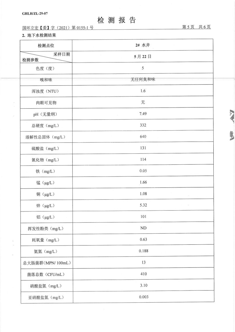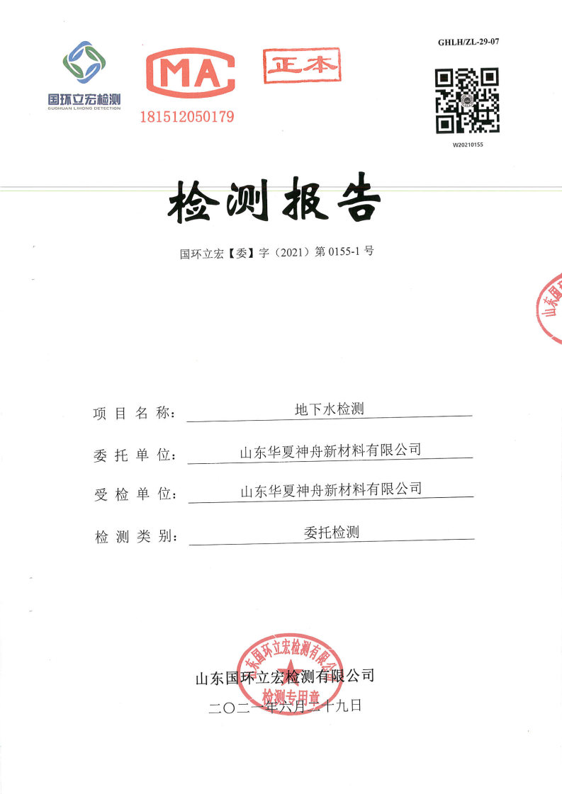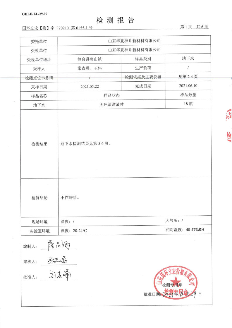 山东华夏神舟新材料有限公司2021年上半年地下水检测报告2