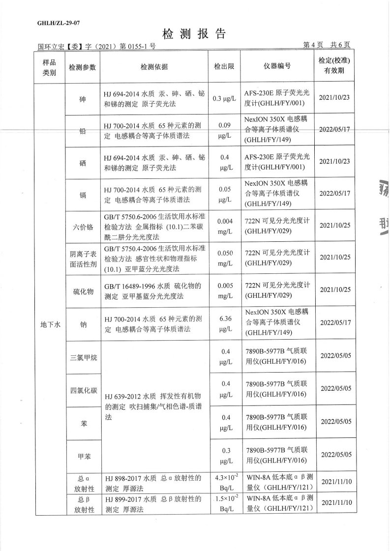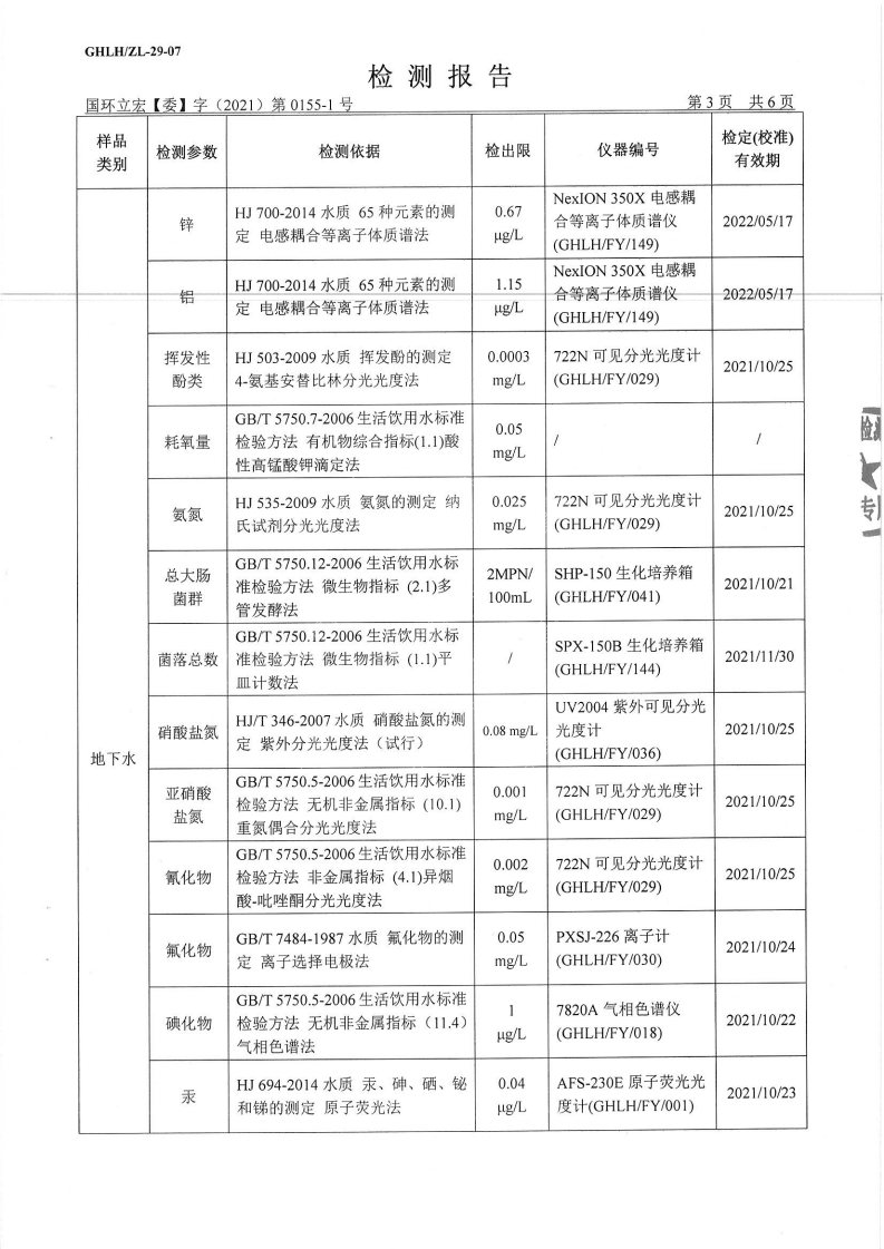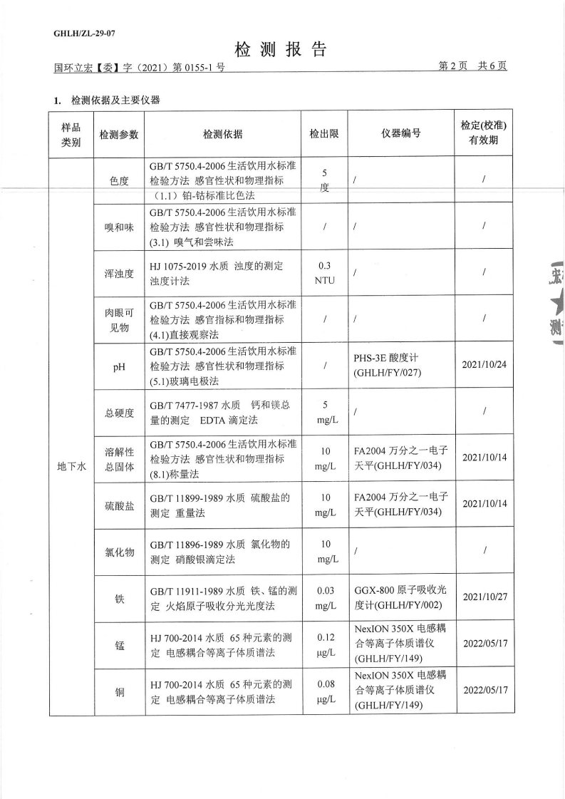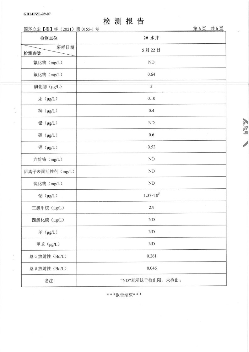 山东华夏神舟新材料有限公司2021年上半年地下水检测报告2